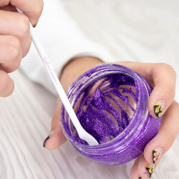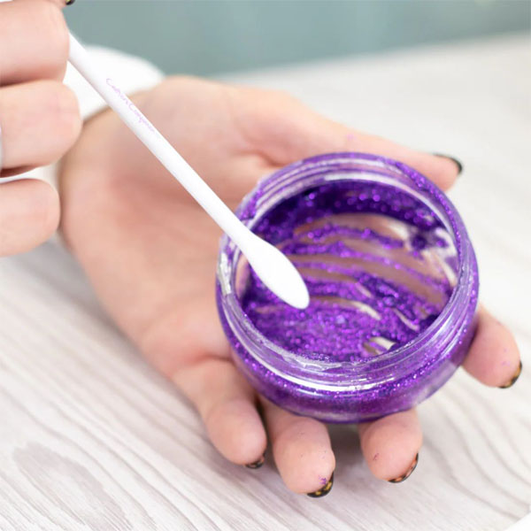 Scoop and scrape every drop of glitter, paint or paste from the container.