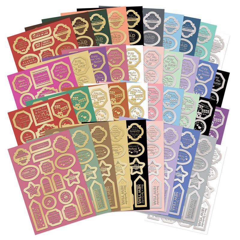 • 5 x Gold-Foiled & Die-Cut Occasions-themed Sentiment Sheets (in 5 different colours)