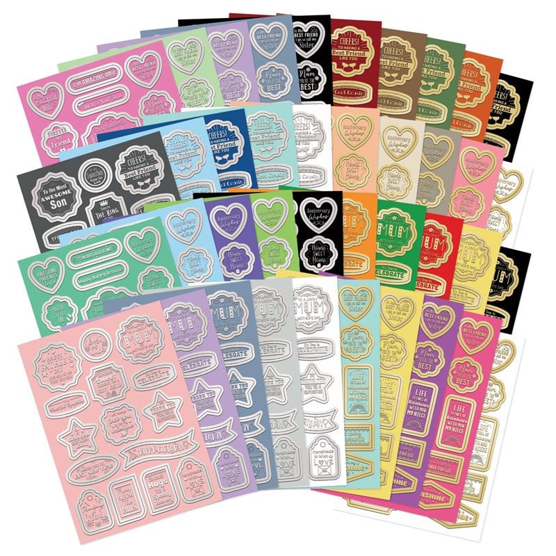 A fantastic variety of shapes and sizes, a superb mixture of colours to suit so many different coloured projects, and an amazing selection of captions, phrases, slogans and sentiments.