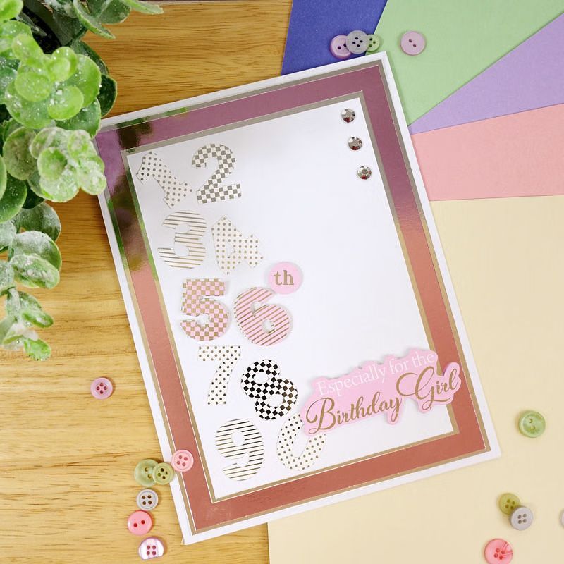 Number sentiment sheets are a great way to head your card with an eye-catching look, or to even create a stunning centepiece. Due to the size of these numbers, you can even make them your centrepiece attraction on your greeting card or craft project! There's a variety of numbers in different sizes, colours and patterns, giving you the versatility to use them in so many different ways!