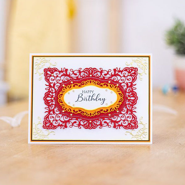 Create cards that are swathed in swirls and wreathed in the most intricate lace patterns with the Gemini Elements Nesting Frame.
