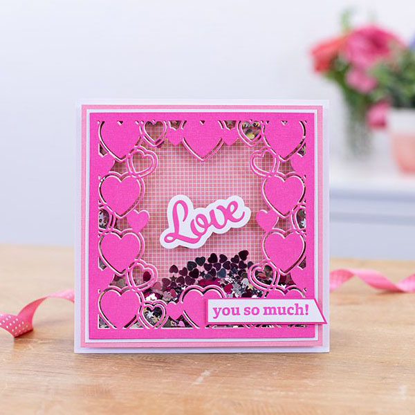 With the Loving Frame set, you will receive 11 stamps and dies to create a frame, filled with love hearts. It also includes a "Love" centrepiece sentiment die, plus sweet additional stamp sentiments to create personalised messages to spread love and romance.