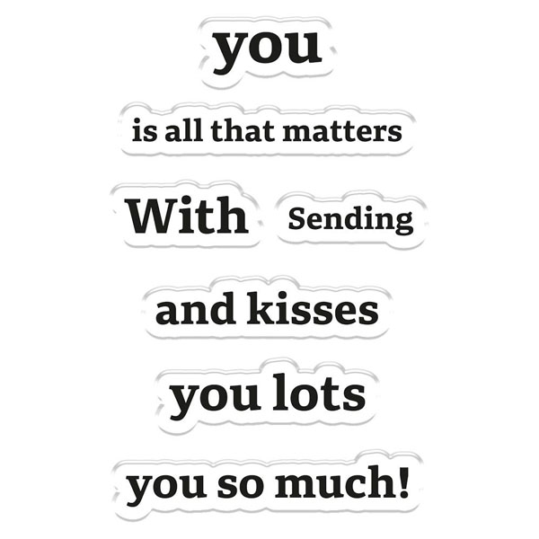 • 7 sentiment stamps - you, is all that matters, with, sending, and kisses, you lots, you so much!.