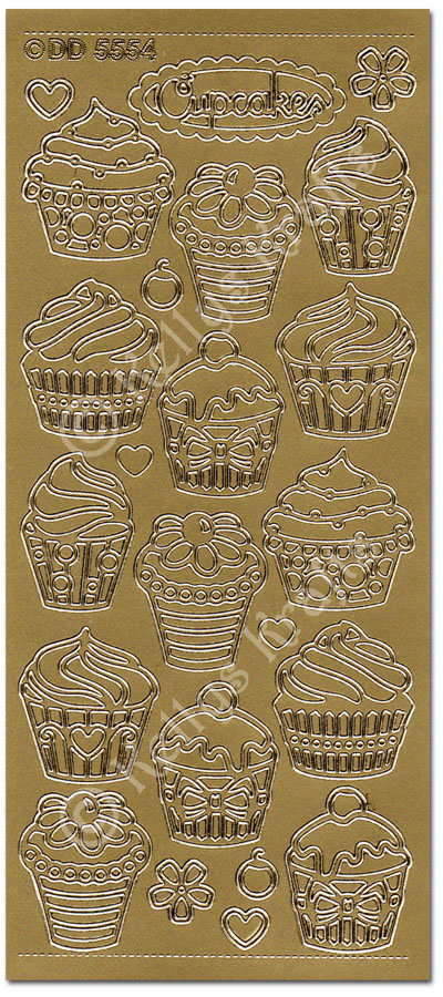 Cupcakes, Gold Peel Off Stickers (1 sheet)