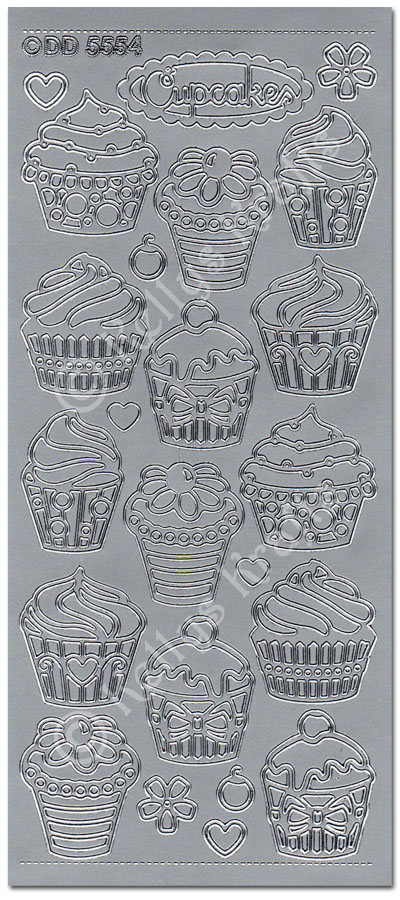 Cupcakes, Silver Peel Off Stickers (1 sheet)