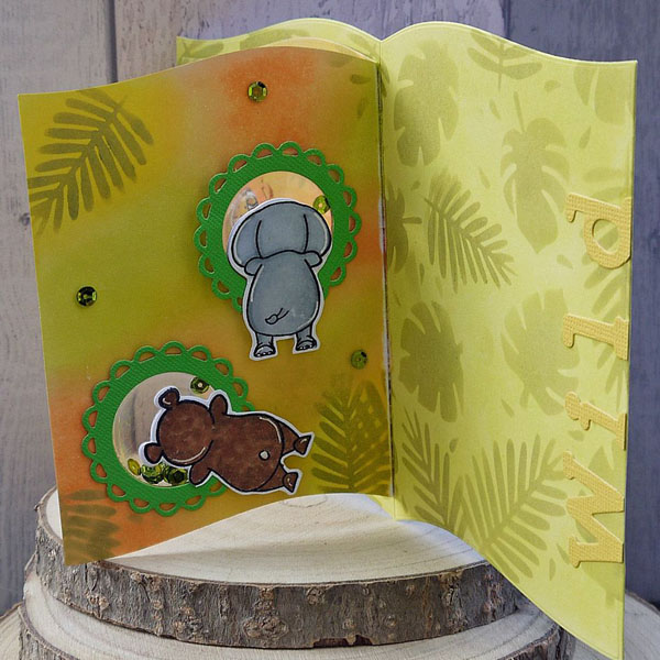 This concept has been designed to help you add the front of a character peeking over the edge of a window on the front of a card, and the back of the character on the interior. This gives a fun peek-a-boo effect that your recipients will love.
