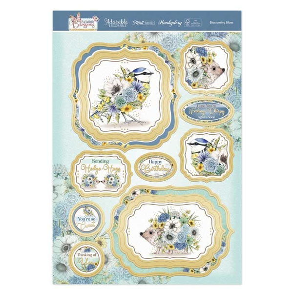 This set is part of the Wildlife Blossoms collection, which has gorgeous wildlife creatures adorned with beautiful blooms The pretty florals are scattered throughout, framing and embellishing the toppers and cardstock. This particular set focusses on blue tits and hedgehogs.