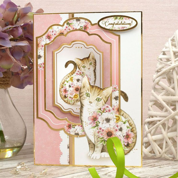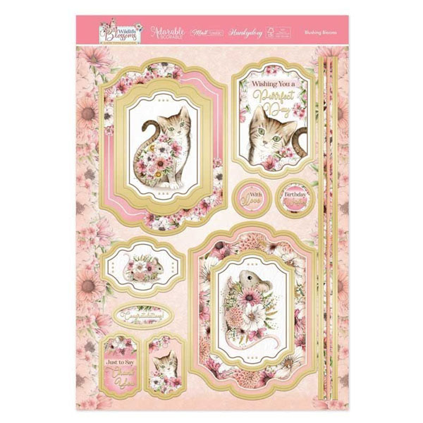This set is part of the Wildlife Blossoms collection, which has gorgeous wildlife creatures adorned with beautiful blooms The pretty florals are scattered throughout, framing and embellishing the toppers and cardstock. This particular set focusses on cats/kittens and mouse/mice.