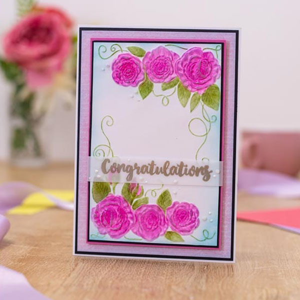 The Entangled Roses 6"x4" 3D Embossing Folder features a border of entangled roses, leaving an empty central space for you to add a sweet sentiment or message! Alternatively, you can put your own die cut shape or topper in the centre and let it stand proud!
