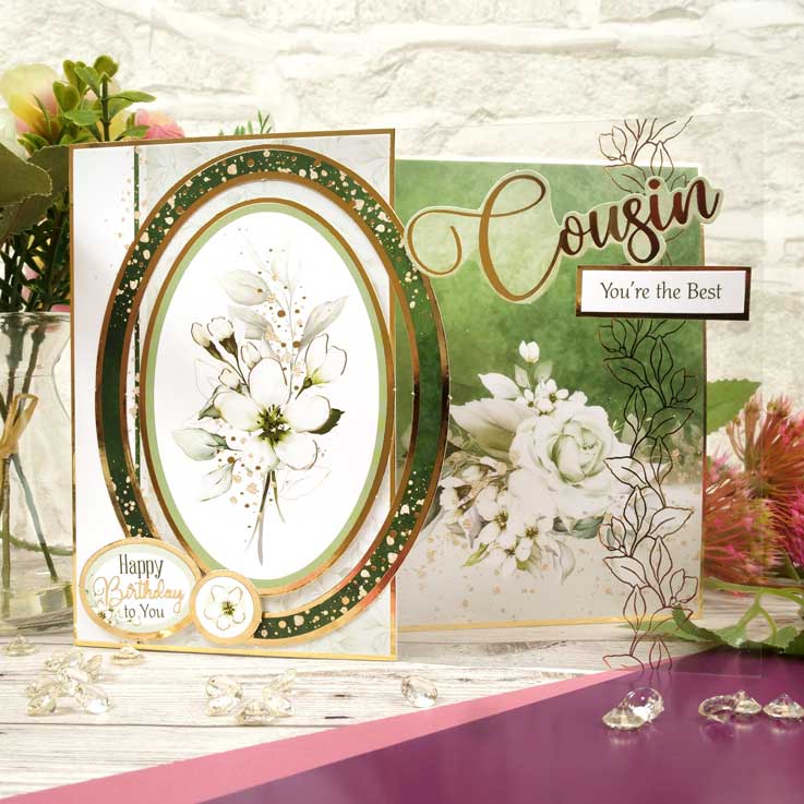 This collection features beautiful blooms and bouquets, decorated with stunning leafy foliage detail, and embellished with gold foiled accents. All carefully designed to colour coordinate beautifully, making them ideal to create elegant projects all year round for any occasion.