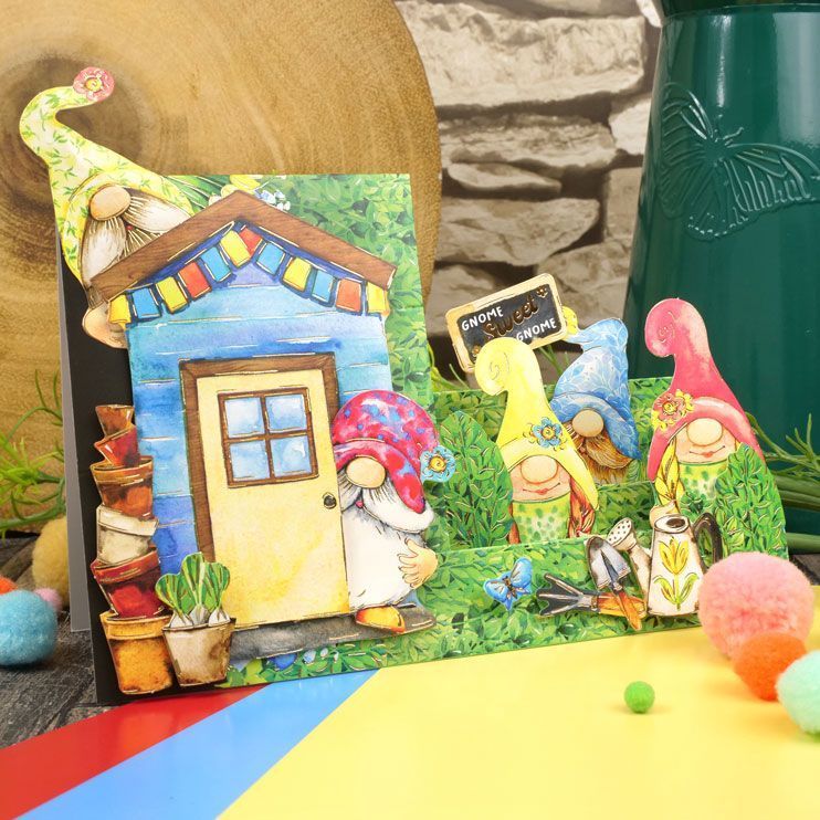 This collection showcases fun and playful artwork of gnomes in bright and bold colourways that are sure to put a smile on any recipient's face! Featuring a collection of cheeky and jolly gnomes in various settings amongst gardening equipment and outdoor scenes.