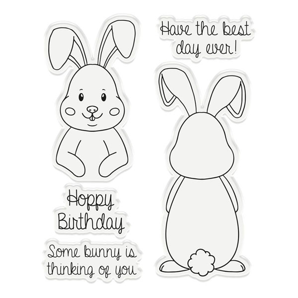With the Hoppy Birthday set, you will receive 5 stamps and 1 die to create a floppy-eared rabbit tag. 2 of the stamps are the front and the back of the bunny rabbit. The remaining 3 stamps are sentiments to coordinate with your project. The metal cutting die fits symmetrically over the front and/or the back of the image.