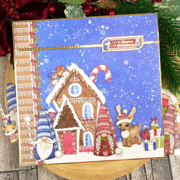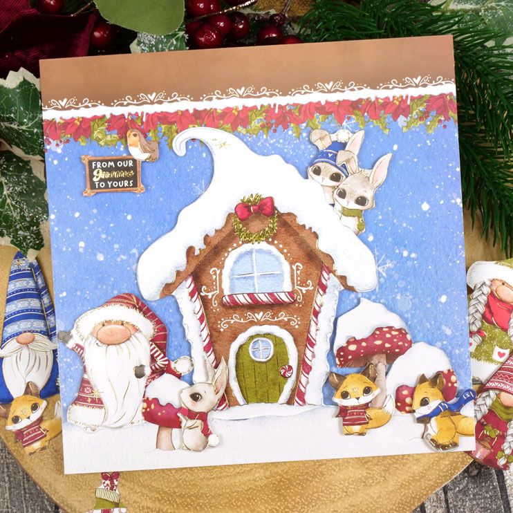 This topper set is part of the Gnome For Christmas collection. This festive selection of artwork features adorable gnomes and their animal friends, with snowy backdrops.