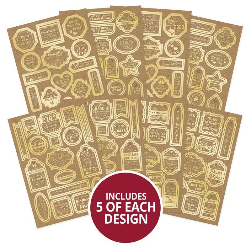 These sentiments are foiled and die cut on great quality kraft card, ready to use as they are. Simply pop them out from the sheet they are held in... no mess and no fuss!