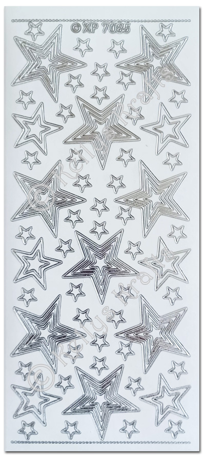 Layered/Nested Stars, Transparent/Silver Peel Off Stickers (1 sheet)