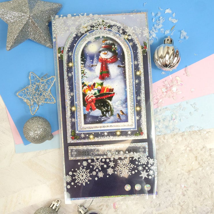 The sheet of Christmas card toppers contains icons, captions and sentiments, with stunning silver holographic foil highlights and edging.