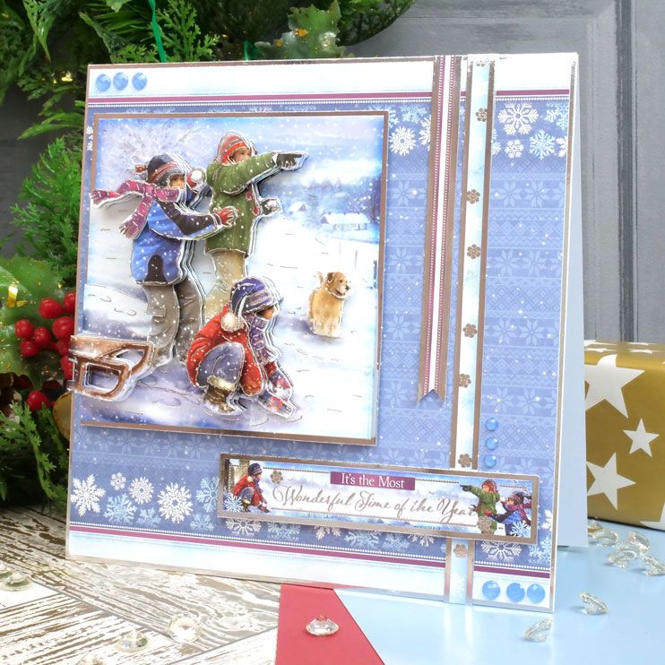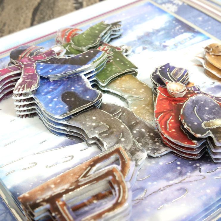 Taken from the "Season's Greetings" collection, this is a deco-large (large decoupage) set. The base layer of the decoupage item is a staggering 11.1cm x 11.1cm. The rest of the A5 base-layer sheet is filled with extra elements (such as sentiments, captions, and border strips). The A4 decoupage sheet has all the layers to build up onto your base layer. The sheet of printed cardstock coordinates beautifully with the rest of the set.
