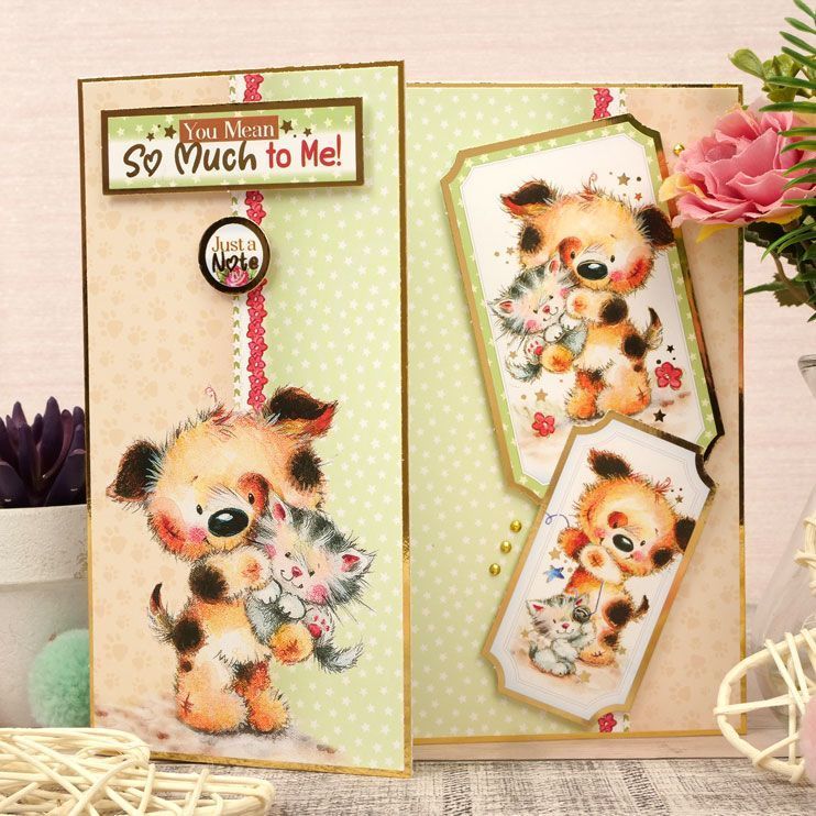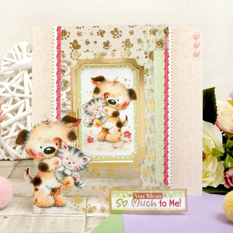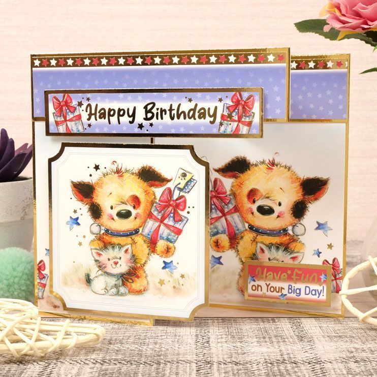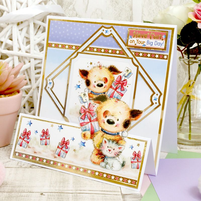 The topper sheets feature adorable huggable images of teddy bears, hedgehogs, a sweet puppy and kitten and a very special bunny having a fabulous time celebrating. The sheets of patterned card coordinate beautifully with the toppers and can be used to turn into card blanks, cut down into panels and mounts, used for matting and layering, or even use the sheets for your own die cutting needs to add further embellishments to your card!