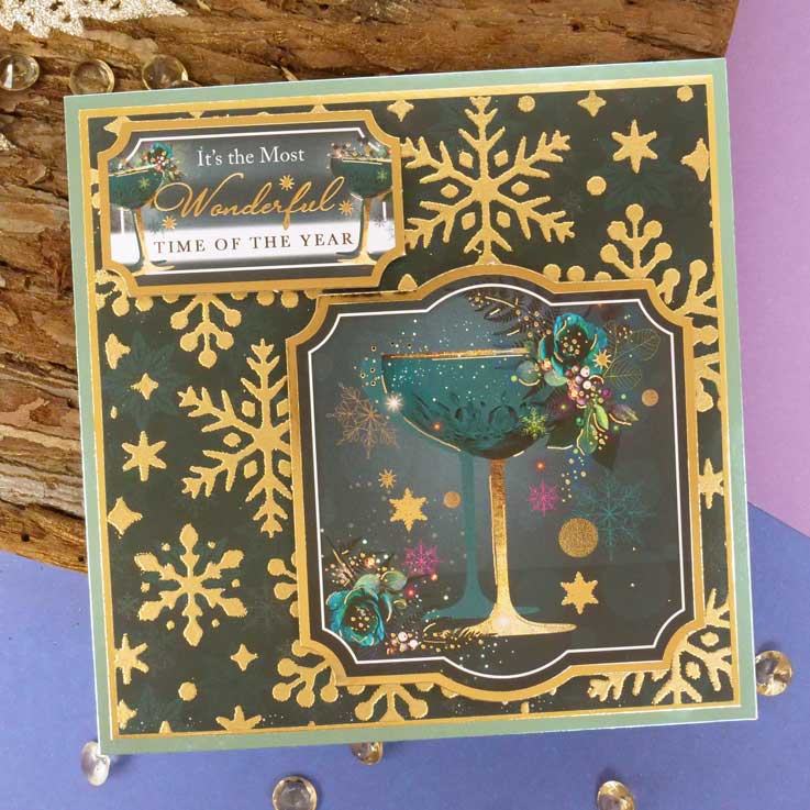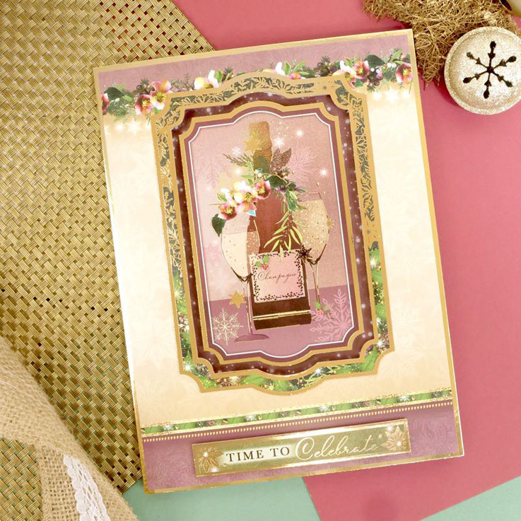 This collection showcases gorgeous artwork featuring an ornate christmas tree, stunning baubles, a pretty champagne bottle, cocktail glasses, christmas pudding, mince pies, bejewelled mistletoe and decorative wreath surrounded by festive florals and fancy snowflakes.