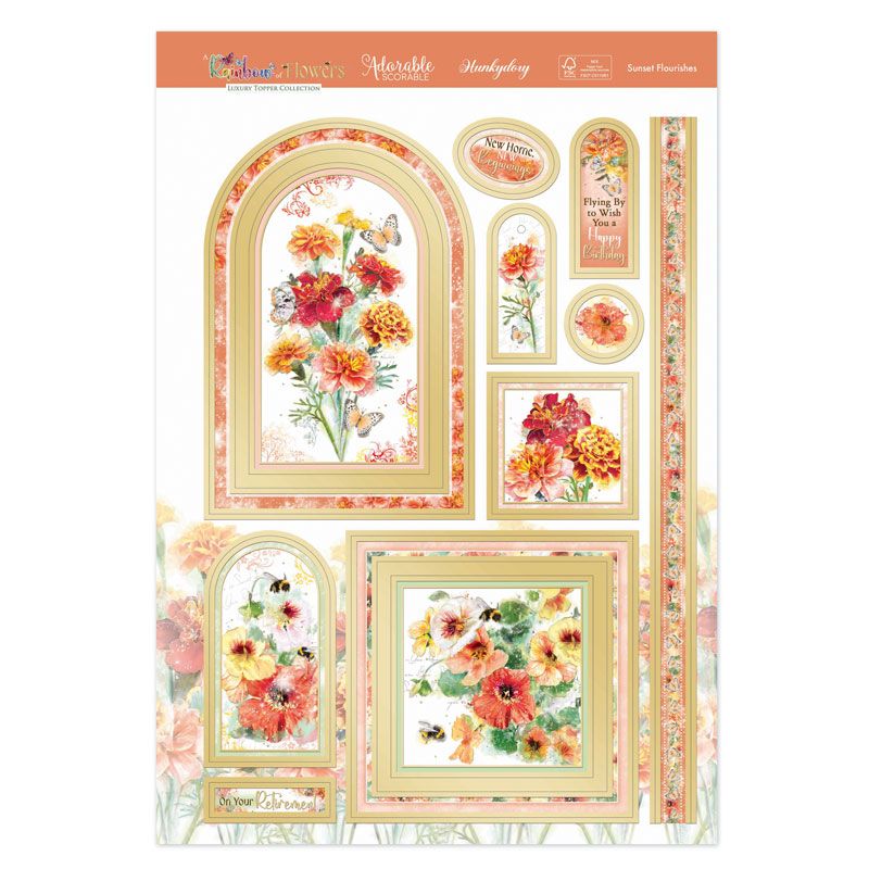 Die Cut Topper Set - A Rainbow of Flowers, Sunset Flourishes