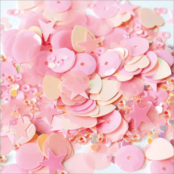 • faceted sequins in mixed sizes