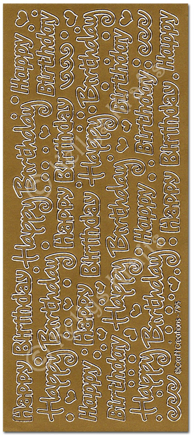 Happy Birthday, Gold Peel Off Stickers (1 sheet)