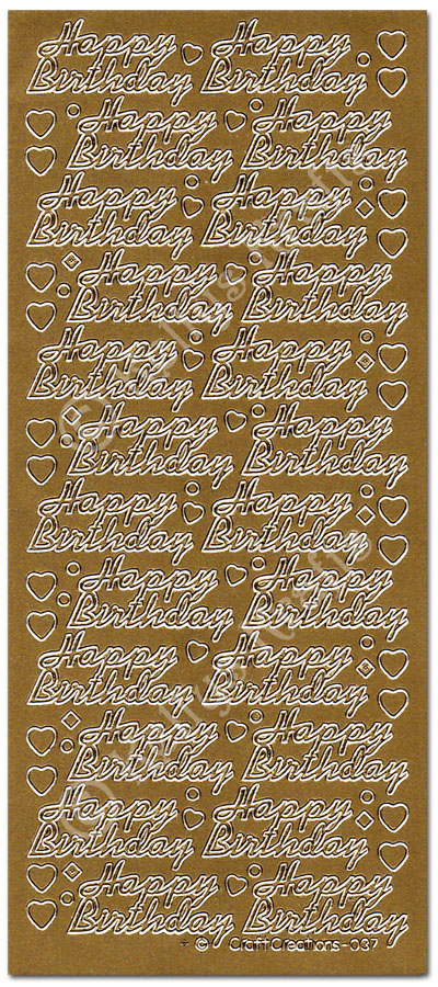 Happy Birthday, Gold Peel Off Stickers (1 sheet)