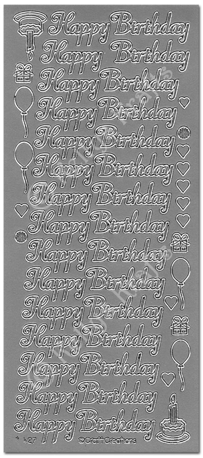 Happy Birthday, Silver Peel Off Stickers (1 sheet)