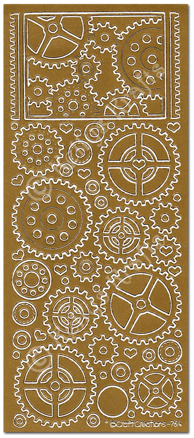 Gears & Cogs, Gold Peel Off Stickers (1 sheet)