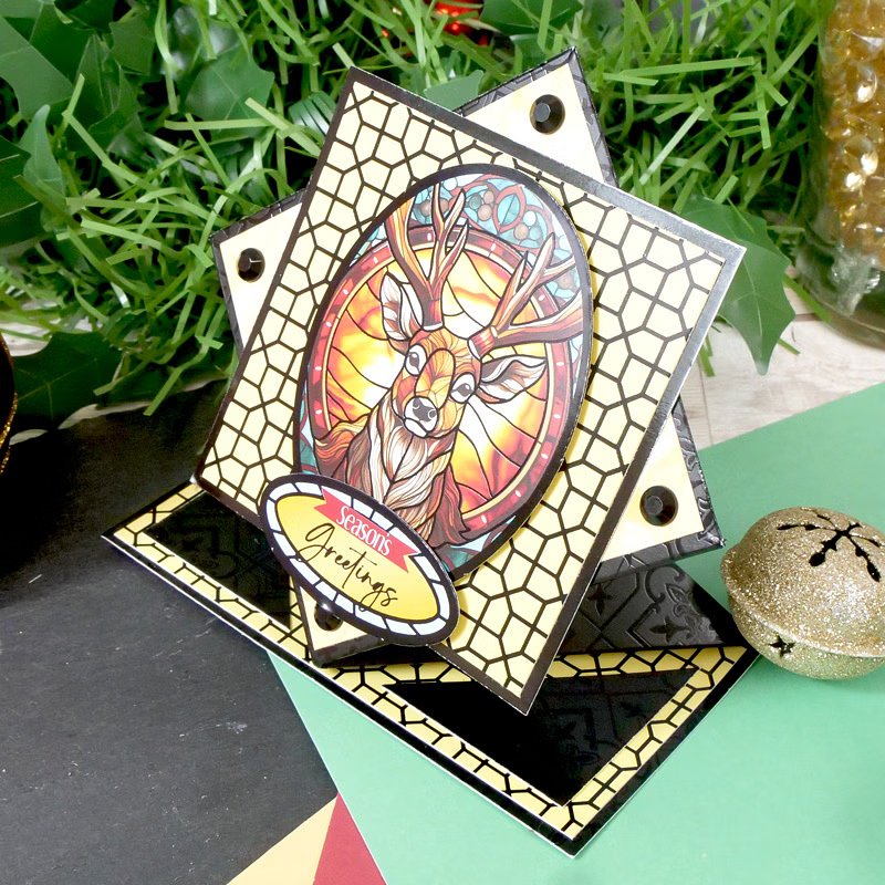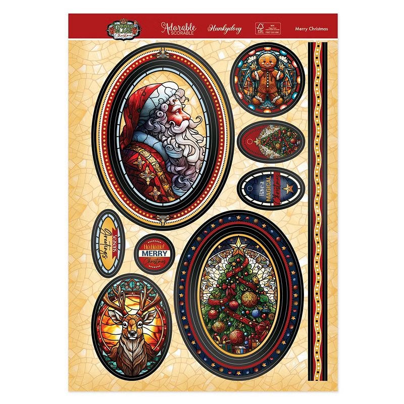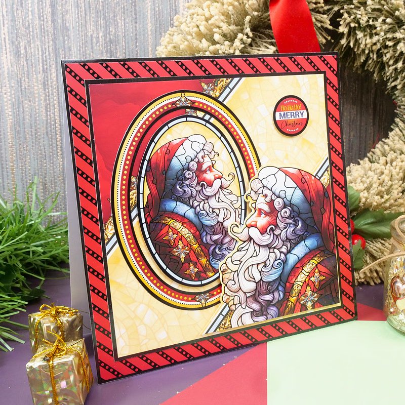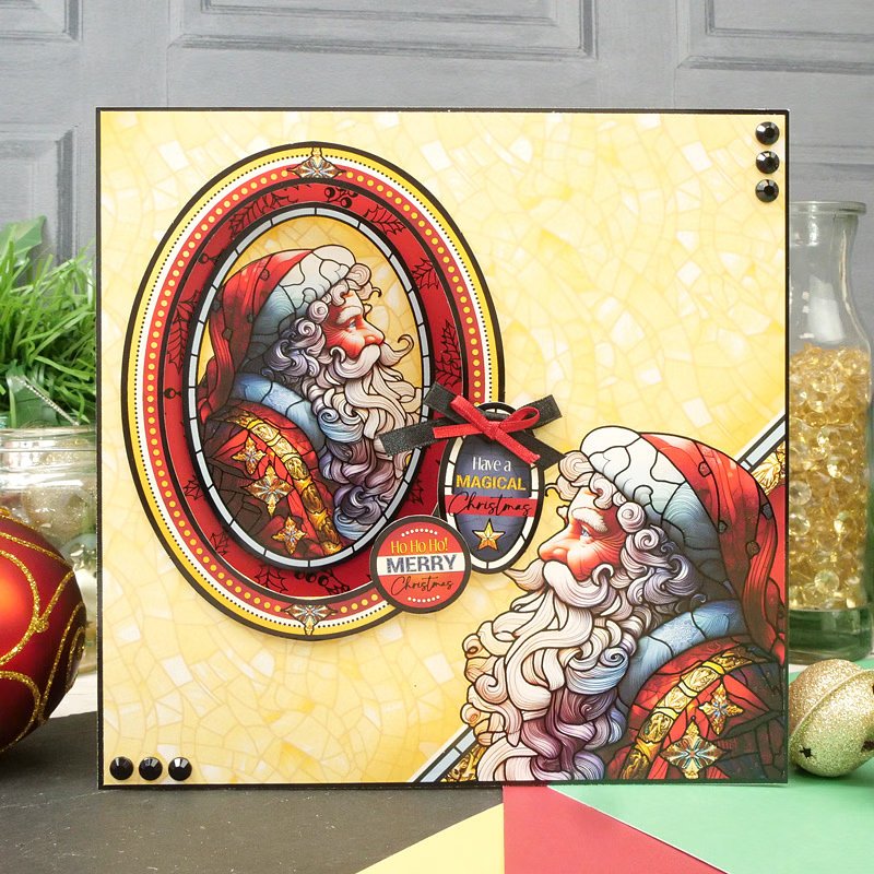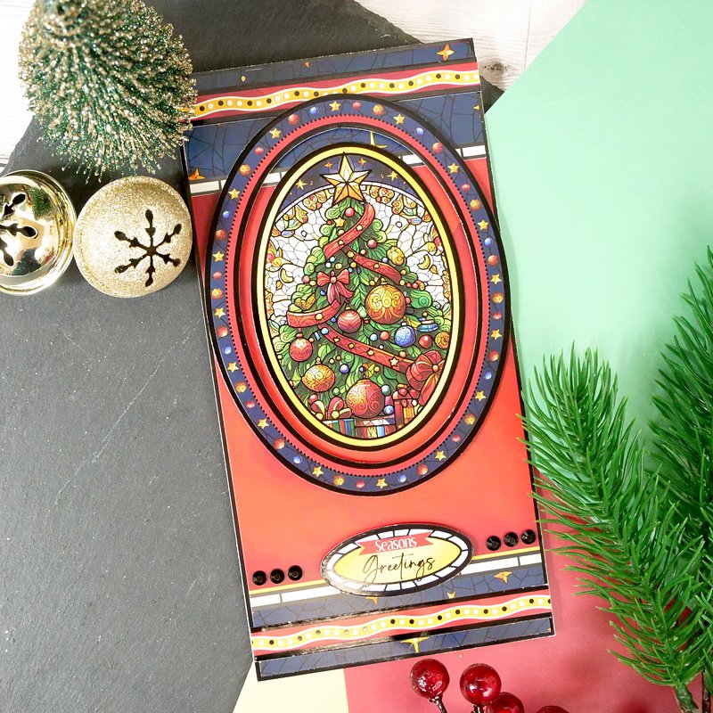 This topper set is part of the Stained Glass Christmas collection. Packed full of vibrant, bright and uplifting coloured festive stained glass imagery.