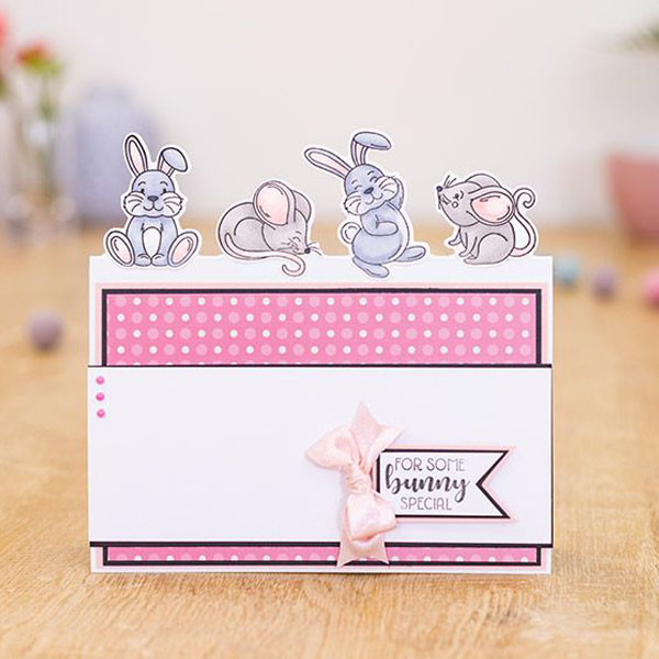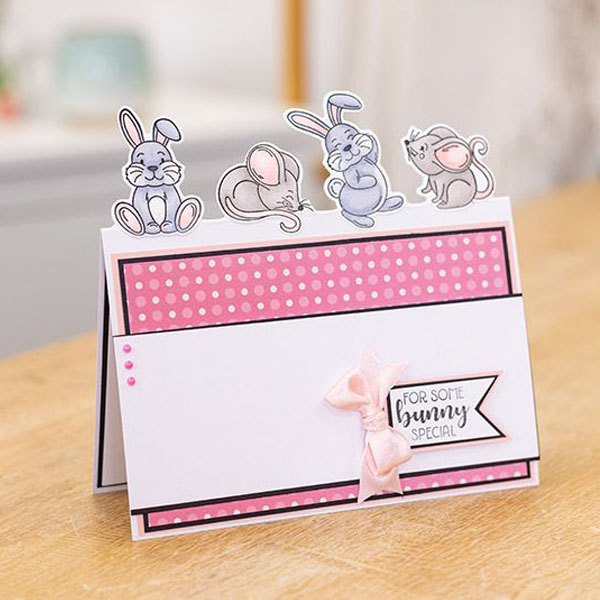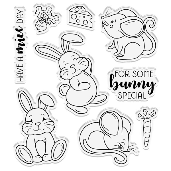 The "Some Bunny Special" set features 9 stamps and 4 dies to create two bunny rabbit and two mouse designs to place onto the top of your cards, bookmarks, party, invitations, tags and much more. Adorable cheese, carrot and turnip decorations, and quirky themed sentiment stamps offer the perfect finishing touch for your card or craft.