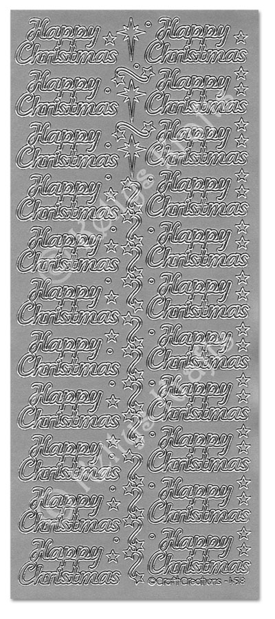 Happy Christmas, Silver Peel Off Stickers (1 sheet)