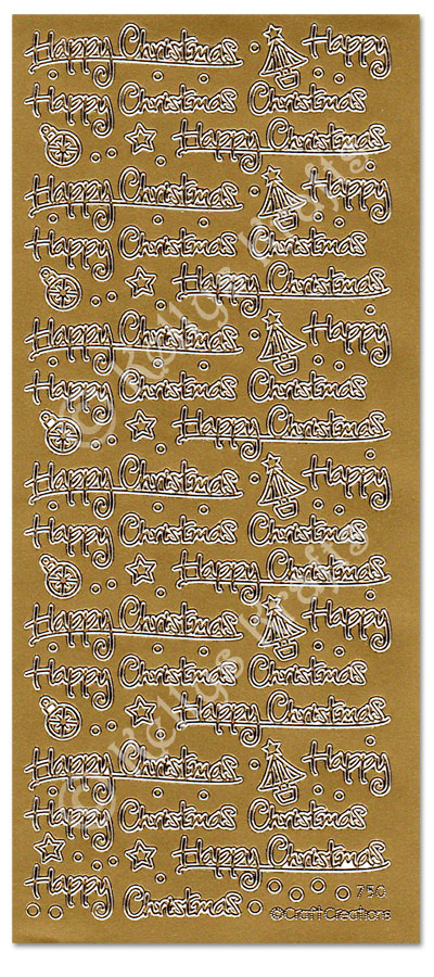 Happy Christmas, Gold Peel Off Stickers (1 sheet)