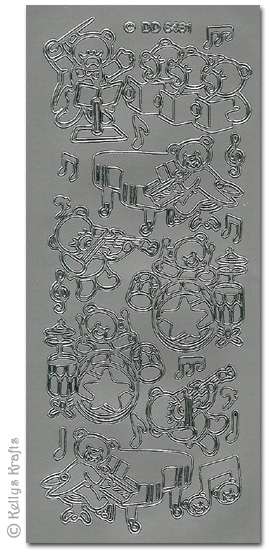 Musical Teddies, Silver Peel Off Stickers (1 sheet)