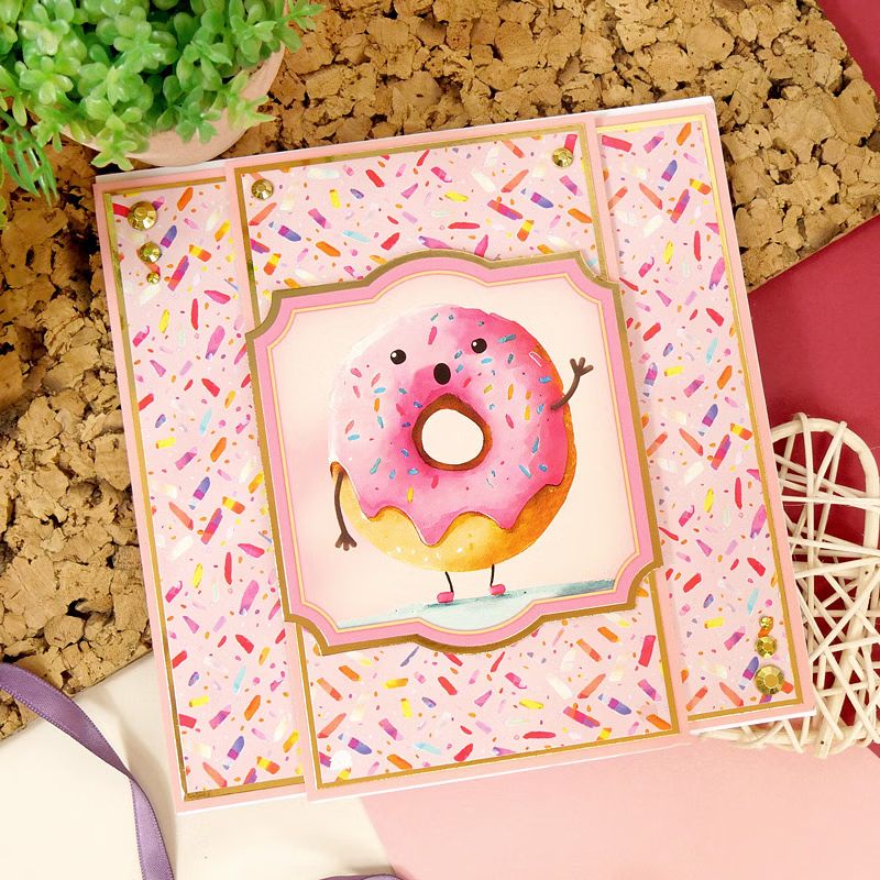 A sheet of card toppers containing adorable centrepiece statement toppers and pun sentiments, with stunning gold foil throughout.