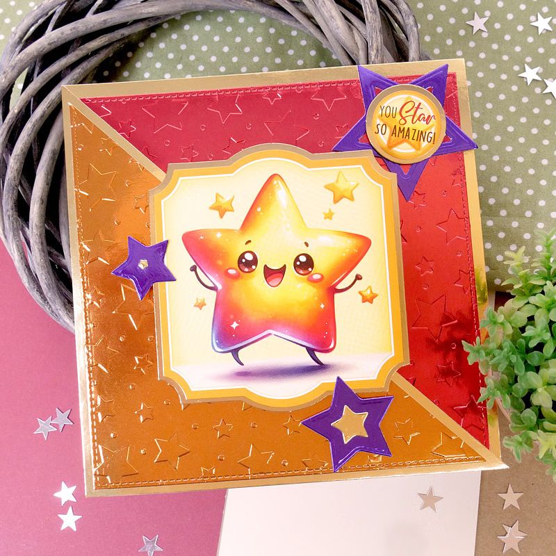 A sheet of card toppers containing adorable centrepiece statement toppers and pun sentiments, with stunning gold foil throughout.