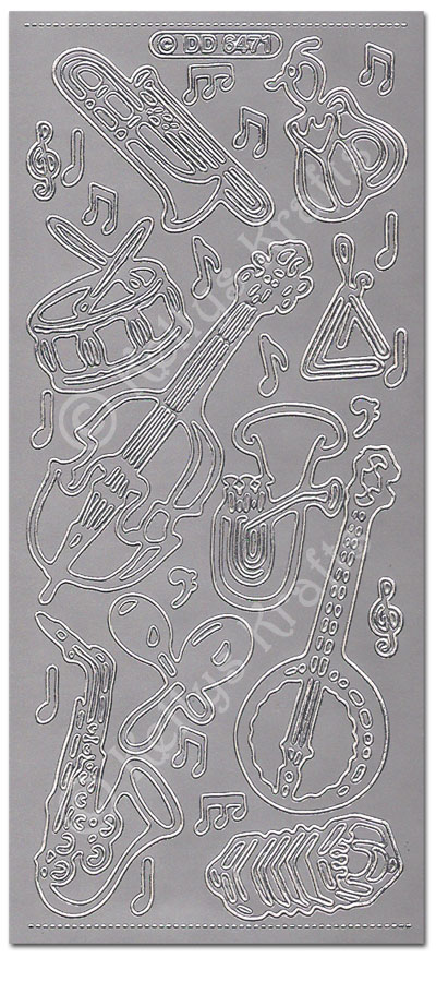 Music Instruments, Silver Peel Off Stickers (1 sheet)