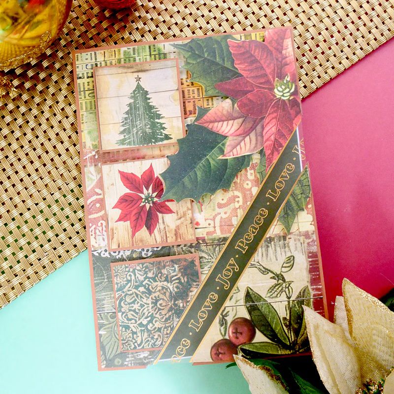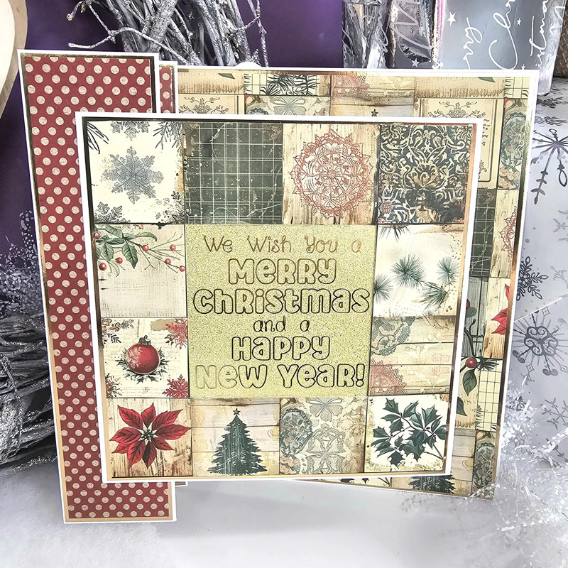 Enjoy an array of versatile patterns in the Festive Collage Paper Pad, featuring rustic collaged pages of wood, lace, script, holly, poinsettias, snowflakes and more. You'll find different styles on each sheet, whether it's layered designs on top of each other, or set out as patches, or placed in strips, all beautifully distressed for added effect.
