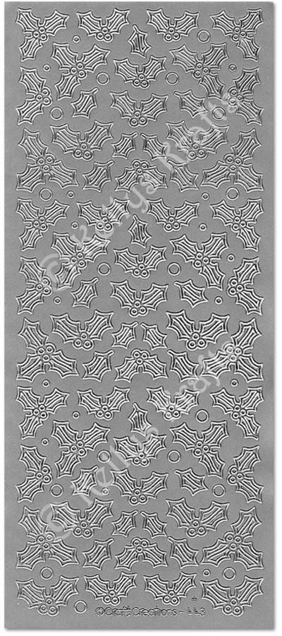 Holly Leaves & Sprigs, Silver Peel Off Stickers (1 sheet)