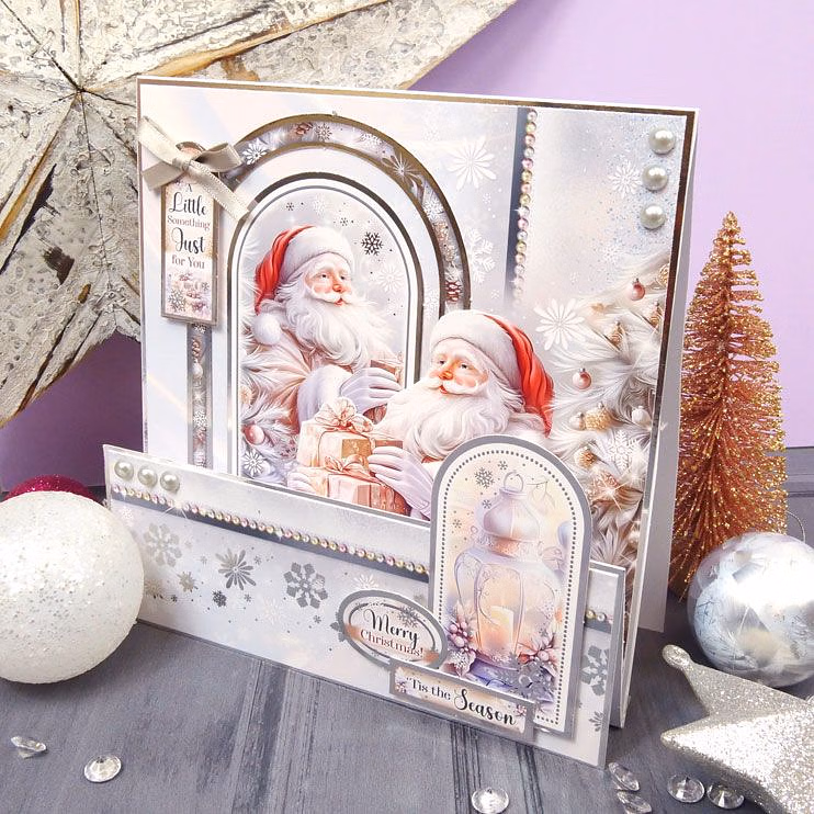 The sheet of Christmas card toppers contains icons, captions and sentiments, with stunning silver foil.
