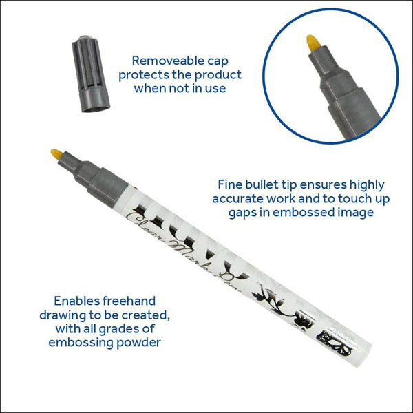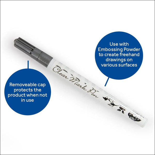 Nuvo Clear Mark Embossing Pen can be used with Embossing Powder to create gorgeous three-dimensional images on card, paper, and porous surfaces.