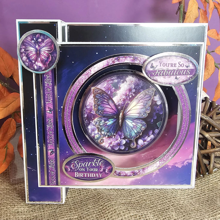 A sheet of card toppers containing beautiful butterfly themed artwork, with stunning silver foil throughout.