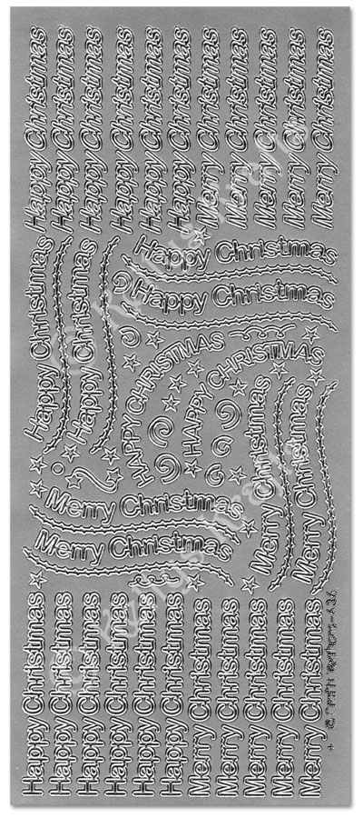Happy Christmas/Merry Christmas, Silver Peel Off Stickers (1 sheet)
