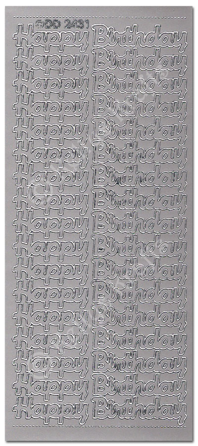 Happy Birthday, Silver Peel Off Stickers (1 sheet)