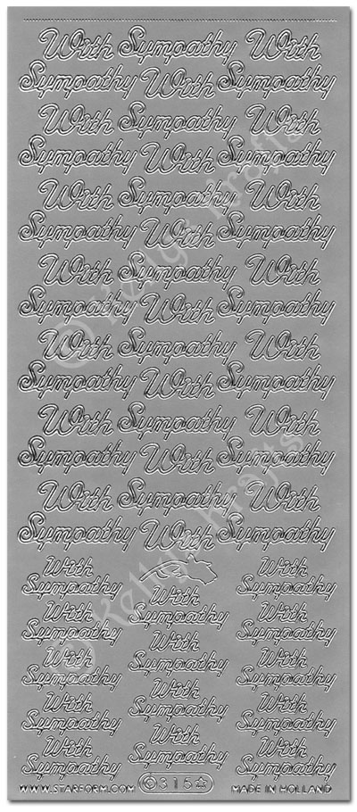 With Sympathy, Silver Peel Off Stickers (1 sheet)