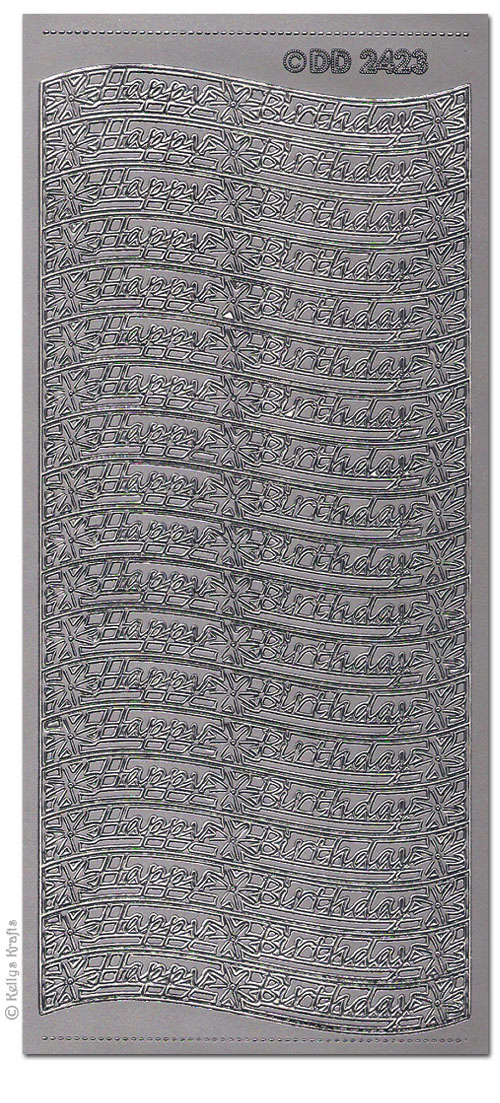 (image for) Happy Birthday Banners, Silver Peel Off Stickers (1 sheet)