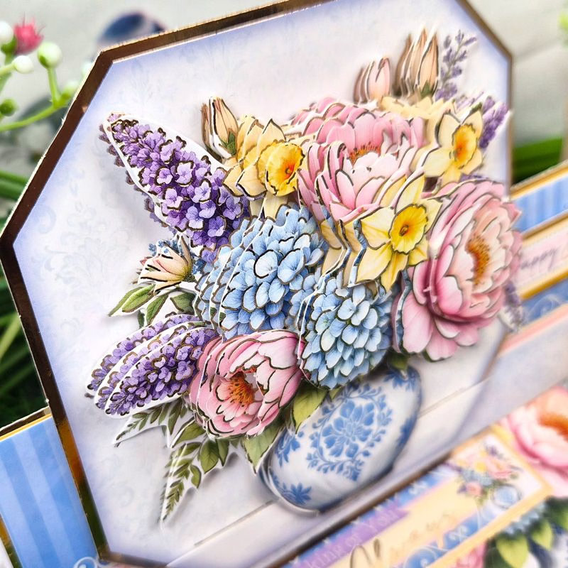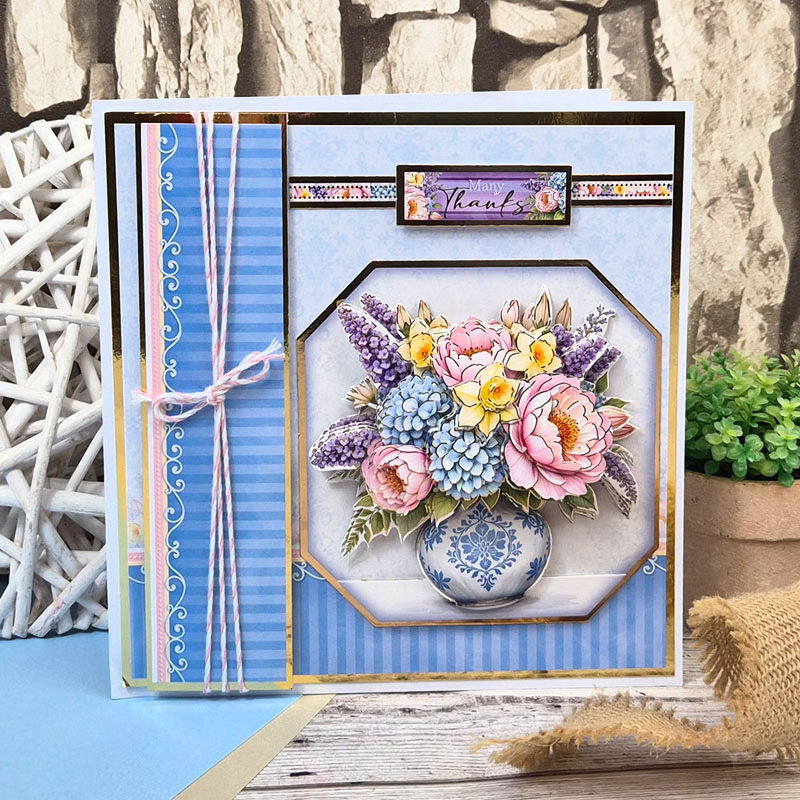Taken from the "Spring Cheer" collection, this is a deco-large (large decoupage) set. The A5 base layer sheet contains the base layer of the decoupage item, as well as extra elements (such as sentiments, and border strips). The A4 decoupage sheet has all the layers to build up onto your base layer. The sheet of printed cardstock coordinates beautifully with the rest of the set.