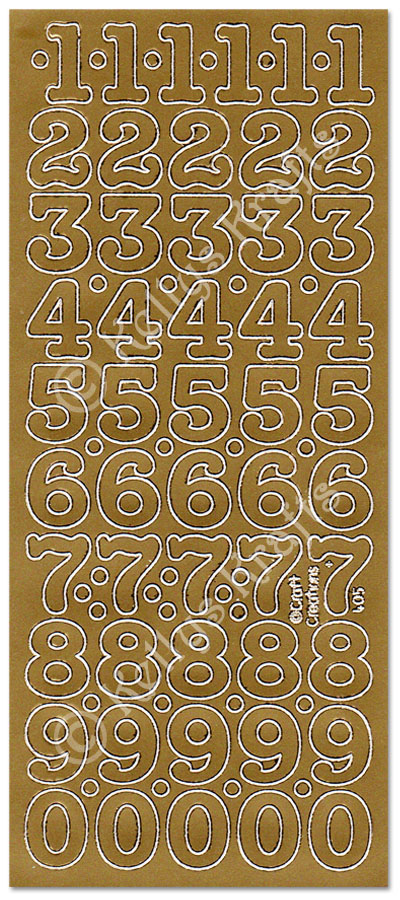 Large 20mm Numbers, Gold Peel Off Stickers (1 sheet)