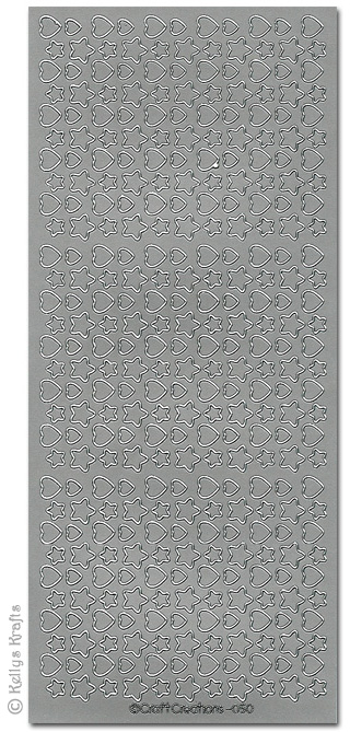 Mini Hearts & Stars, Silver Peel Off Stickers (1 sheet)