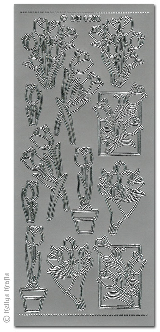 Tulips, Silver Peel Off Stickers (1 sheet)